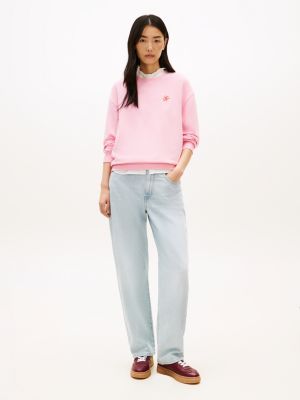 Ta bluza z miękkiego materiału frotte ma luźny krój z obniżoną linią ramion i jest ozdobiona wyhaftowanym logo, które nadaje jej swobodny charakter.