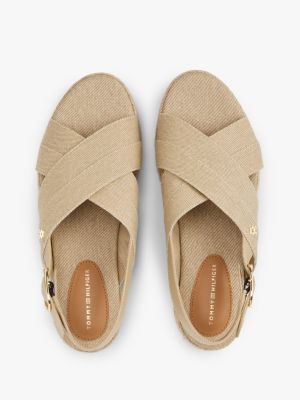 Sandały w stylu klasycznych espadryli w nowatorskiej wersji na platformie i z krzyżującymi się paskami.