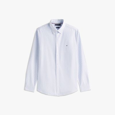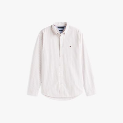 Ta klasyczna koszula z tkaniny oxford w pionowe paski na całej powierzchni wprowadzi wzór do eleganckich stylizacji.
