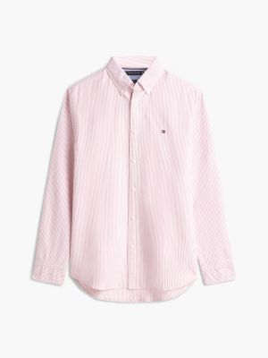 Ta klasyczna koszula z tkaniny oxford w pionowe paski na całej powierzchni wprowadzi wzór do eleganckich stylizacji.