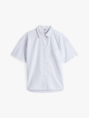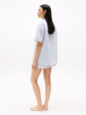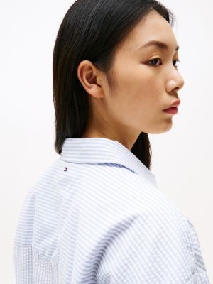 Gdy wybierasz się na plażę, narzuć na strój kąpielowy tę stylową, zwiewną koszulę z krepowanego materiału.