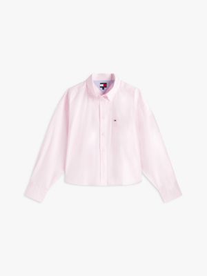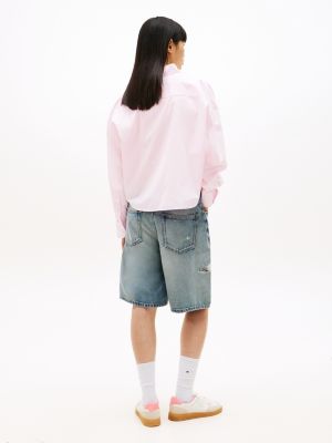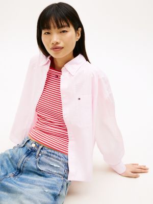 Ta luźna koszula o skróconym kroju, uszyta z popeliny z czystej bawełny, to klasyczny model w nowej, swobodnej odsłonie.