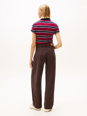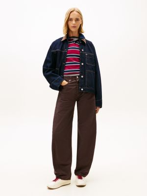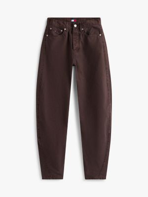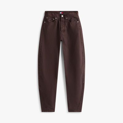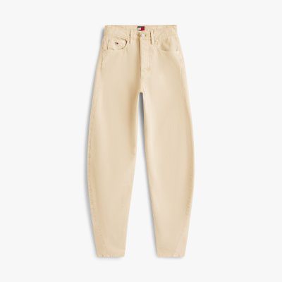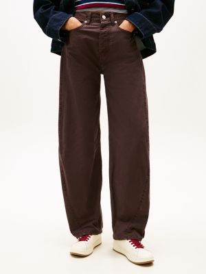 Szerokie nogawki o kroju beczkowym i średni stan nadają tym spodniom z czystej bawełny efektowny wygląd.