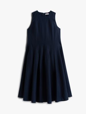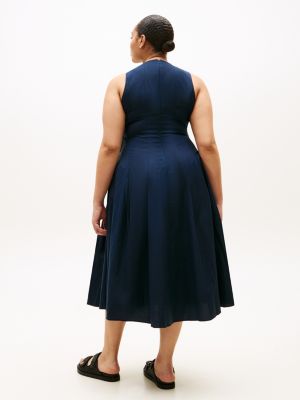 Ta elegancka sukienka bez rękawów o podkreślającym talię fasonie z rozszerzanym dołem przyciąga wzrok prostotą kroju i efektownymi guzikami w kolorze złota.