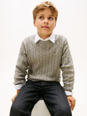 Ten ciepły sweter z okrągłym dekoltem, uszyty z czystej czesanej bawełny o warkoczowym splocie w żeglarskim stylu, doskonale sprawdzi się w chłodne dni.