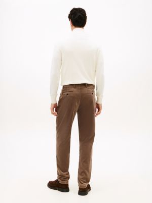Dodaj do swojej garderoby element w stylu retro w postaci tych sztruksowych chinosów z zaszewkami z przodu i łatwo dopasowywanym do sylwetki krojem ze zwężanymi nogawkami.
