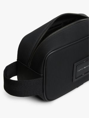 Ta tekstylna kosmetyczka z praktycznym bocznym uchwytem i naszywką z logo ma solidną konstrukcję, która zapewnia bezpieczny transport Twoich kosmetyków.